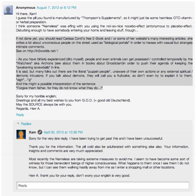 What lead to this has been noted in my Daily Journal. The strange and menacing behavior may be explained by the above comment. The character of these people are animated similar to a cartoon charter. Possession? I don’t know if I am now influenced by the comment, but it kind of makes sense.