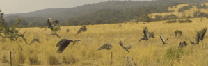 | Buzzards fleeing after feeding on a carcass as I approach… |