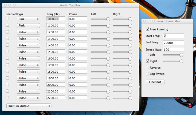 The image above shows the frequency using Audio Toolbox on my Mac. I open the sweep window and set the start frequency at 0 and the end frequency at 20000. The main window is not used at this time.